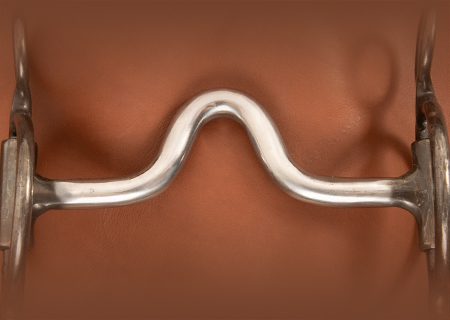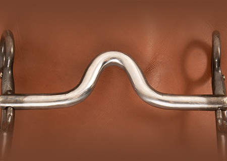 Designed with the tie-down roper in mind, this mouthpiece pushes the horse’s mouth into the roper’s hands to maximize the jerk line’s function. It offers more control on a horse that drops in the front and helps keep the horse’s weight shifted to the hind end. This mouthpiece is forgiving for the sensitive horse, and therefore is a good choice for a youth or novice roper. This design helps make up ground in horsemanship so the roper can focus on the calf.